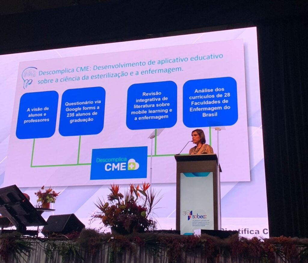 Com o trabalho intitulado Descomplica CME: desenvolvimento de app educativo sobre a ciência da esterilização e a enfermagem, a aluna da UCP ganhou o prêmio de melhor trabalho com enfoque científico no evento. No projeto ela utiliza modernas tecnologias de modelagem 3D e softwares de renderização de imagens para criar uma central de material e esterilização na qual o usuário pode interagir com todos os equipamentos, ouvir os sons, conhecer mais os processos através de diversos tipos de mídias.