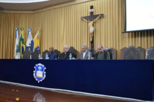 Em sua fala no Salão Nobre da UCP, Dom Joel explicou que a Campanha da Fraternidade é “o jeito brasileiro de viver a Quaresma”, unindo fé e compromisso com a realidade do povo: “A Campanha da Fraternidade ajuda a quaresma a não se restringir apenas à dimensão religiosa. O ser humano é integral: ama, sonha, chora, ri. E a Campanha trabalha com esse ser humano integral.”