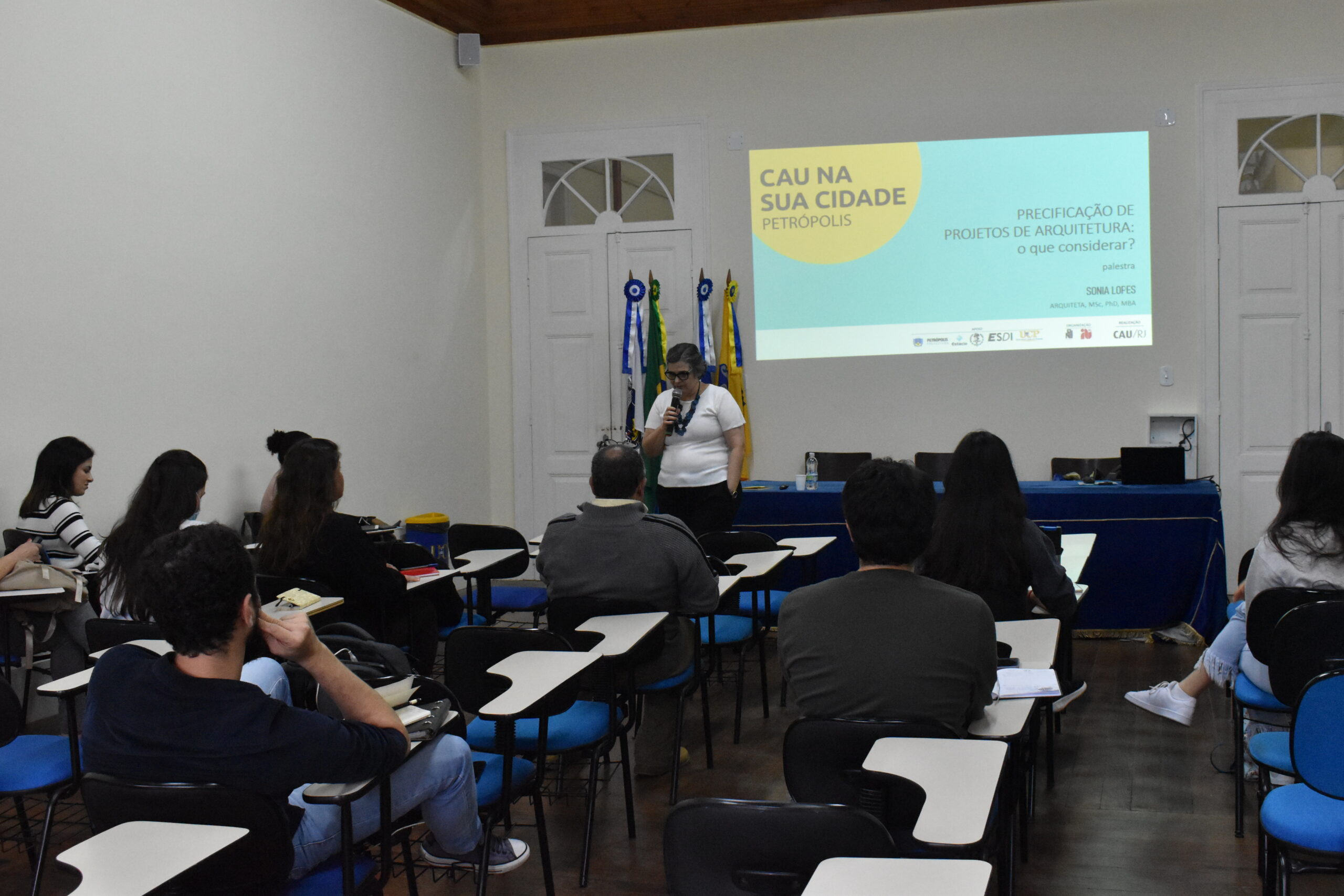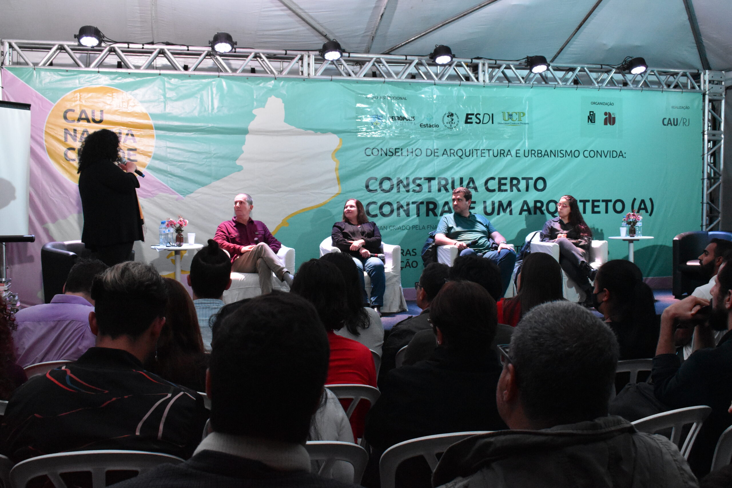 “A parceria do CAU/RJ e UCP é muito importante e ficamos muito gratos e felizes por termos essa oportunidade de termos sediado no campus que é sede do nosso curso de Arquitetura e Urbanismo nesse ano que o curso está fazendo 10 anos, sendo o nosso o primeiro curso aberto da Região Serrana”, comenta a professora que também participou de duas rodas de conversas sobre importantes temas.