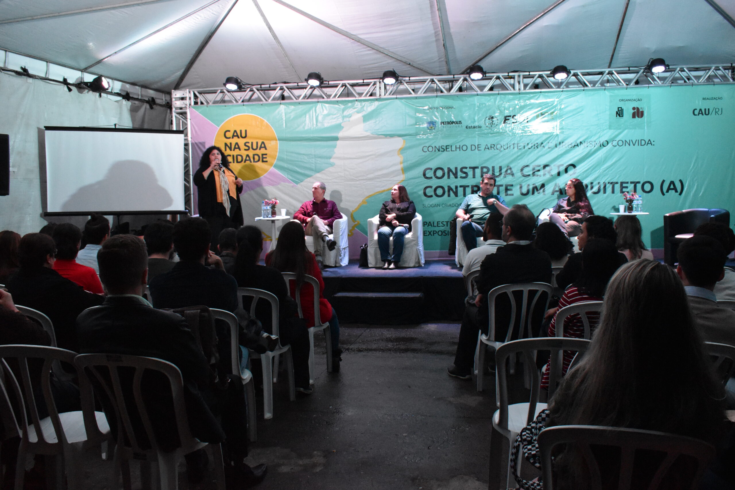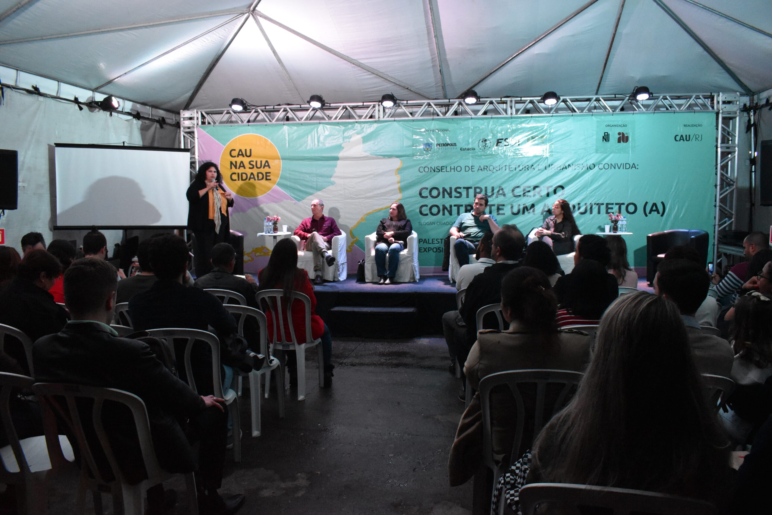 Para iniciar as celebrações de 10 anos do curso de Arquitetura e Urbanismo da UCP, a Universidade recebeu a terceira edição do CAU na sua cidade, organizado pelo Conselho de Arquitetura e Urbanismo do Rio de Janeiro (CAU/RJ) em conjunto com o Núcleo IAB de Petrópolis (Instituto de Arquitetos do Brasil – NAU Petrópolis) e apoio da UCP. O evento aconteceu de 27 a 29 de setembro no Campus Dom Cintra e na Praça da Liberdade. Além de sediar o evento, a Universidade também esteve representada com a participação da diretora do CEC e coordenadora da graduação na UCP, Profª. Erika Machado.
